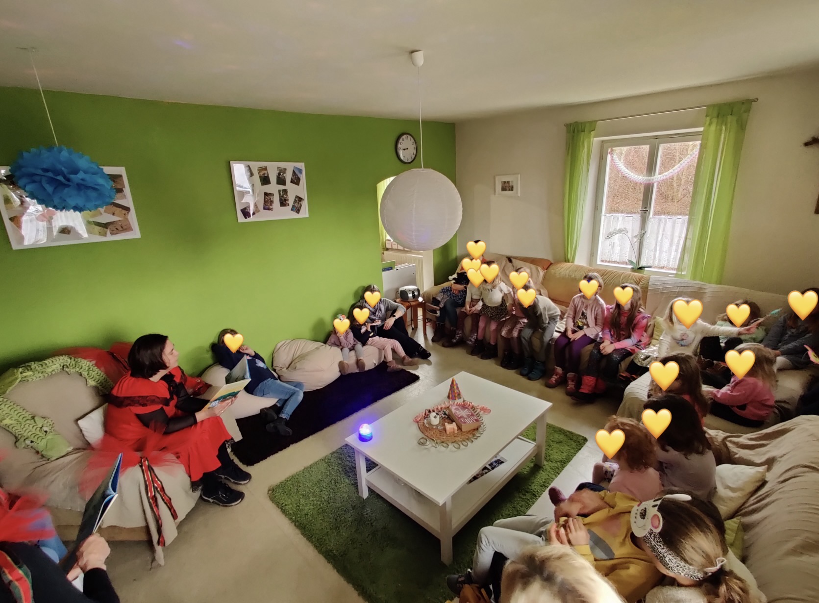 Es war ein schönes Bild so viele Kinder gemeinsam beim Zuhören und Betrachten der Bilder vereint zu sehen, und so hoffen wir, dass dieser Kontakt mit der Welt der Bücher und das gemeinsame Erlebnis weiterhin Früchte trägt und viele Kinder unsere Bücherei besuchen werden. Es war schön mit euch, bis bald, euer Büchereiteam Lautrach.