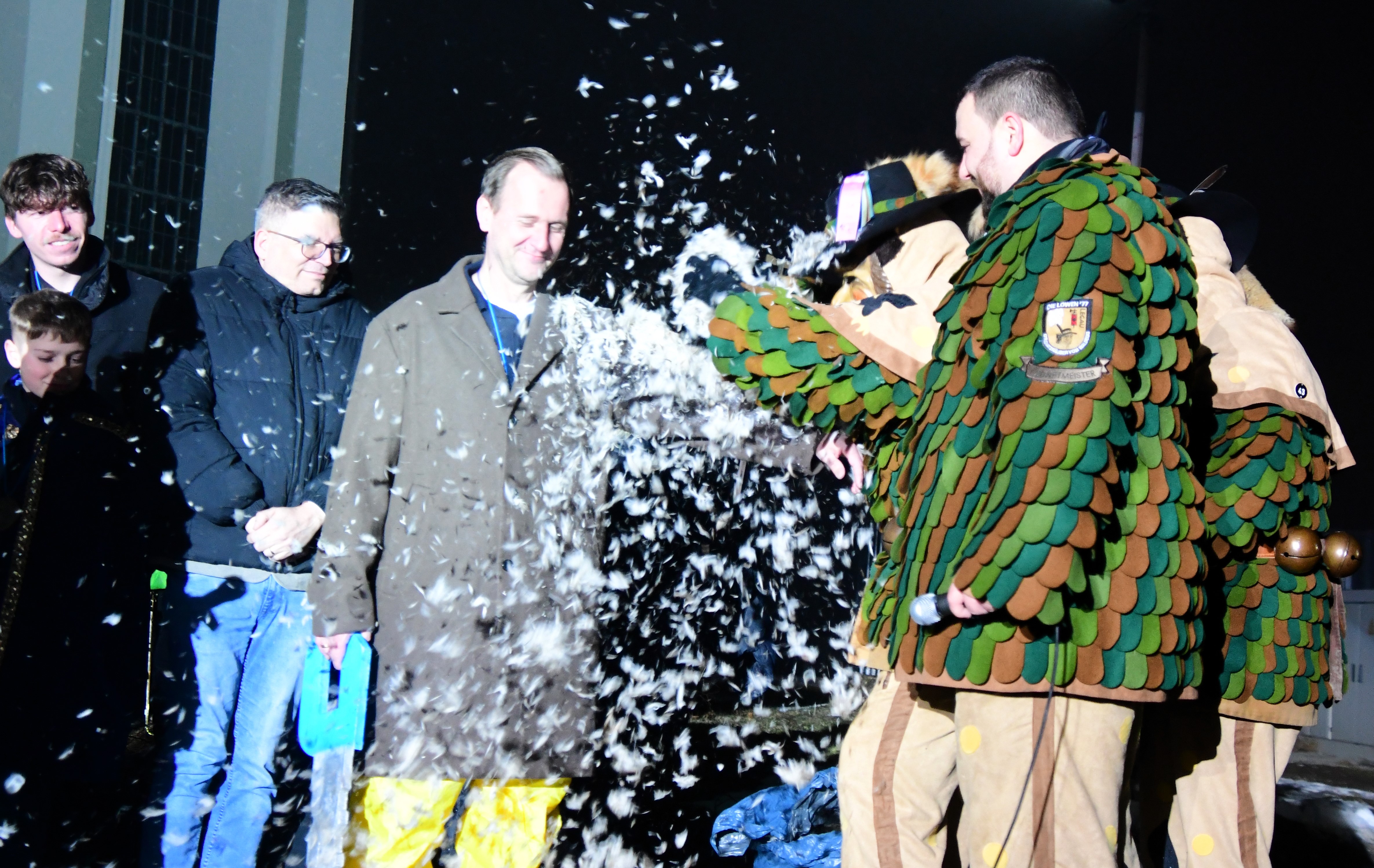 In der Marktgemeinde Legau ließ sich der neue Bürgermeister, Thomas Heinle, mit einem Sack voller Federn willig zum Vogel der Schatzräuber umdekorieren, übergab auf der Bühne den Rathausschlüssel an das Prinzenpaar und gelobte, jeden Tag an dem von der Freiwilligen Feuerwehr aufgestellten Narrenbaum stehend dafür zu sorgen, dass keine „anderen Vögel“ die neu gemalten Schilder verschmutzen.